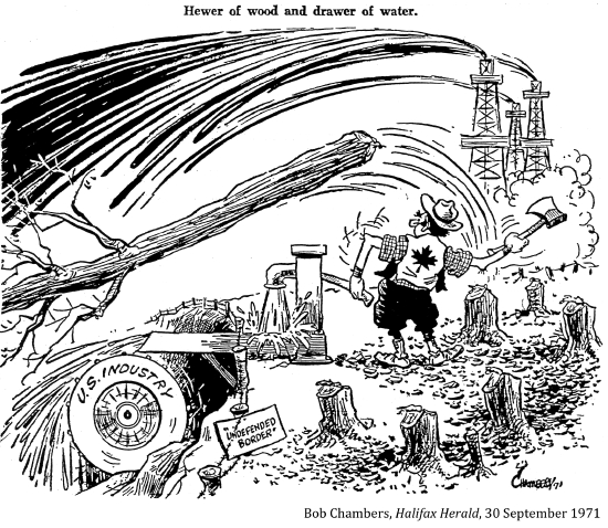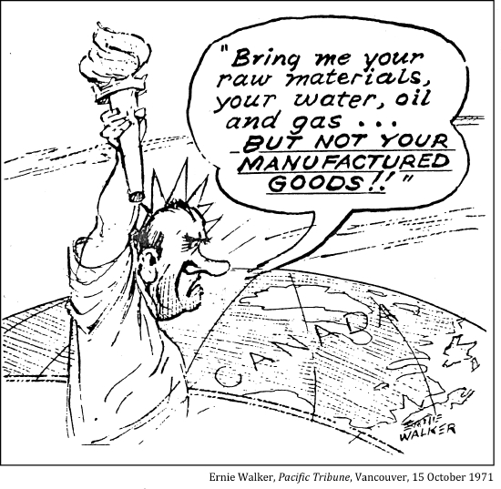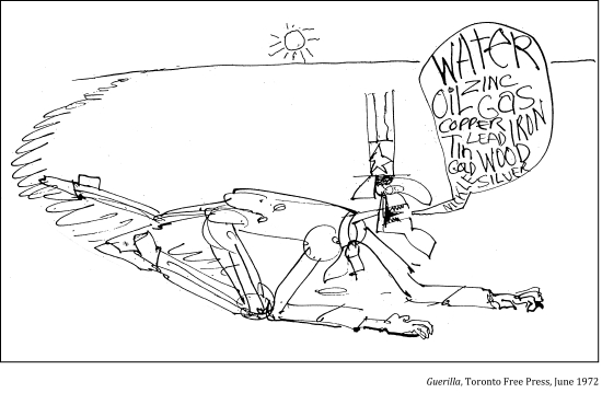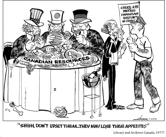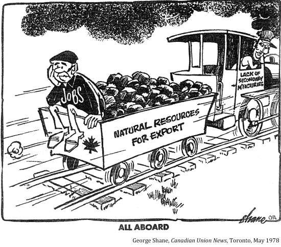 "The extraction and supply of staples, such as fur, fish, wood, wheat, minerals, and petroleum, to large portions of the world shaped Canada's economic, cultural and political development."