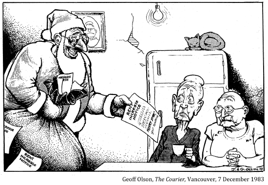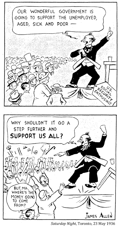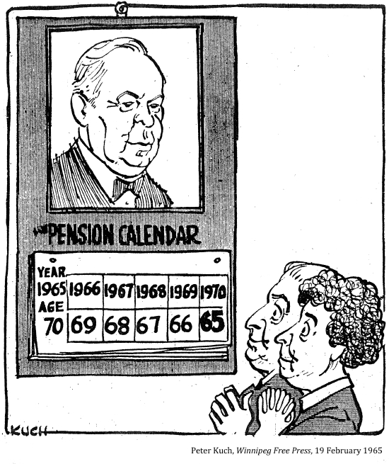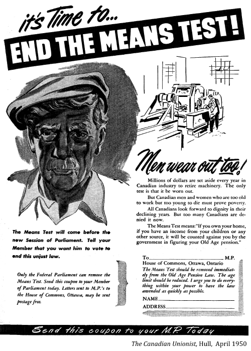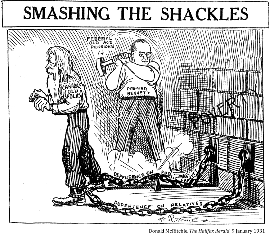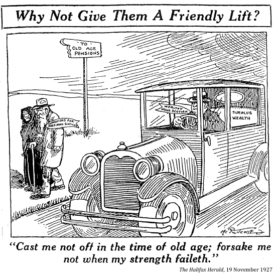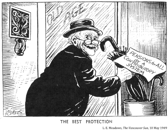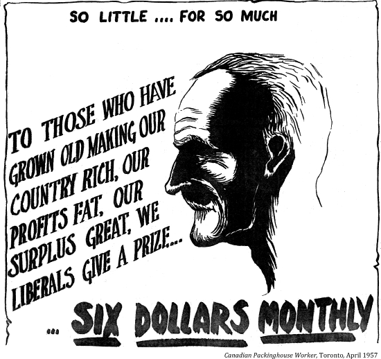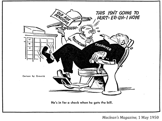 [Canada's old age pension paid a paltry $20 each month to needy Canadians over 70 who had passed a humiliating means test. This lasted until 1951.]