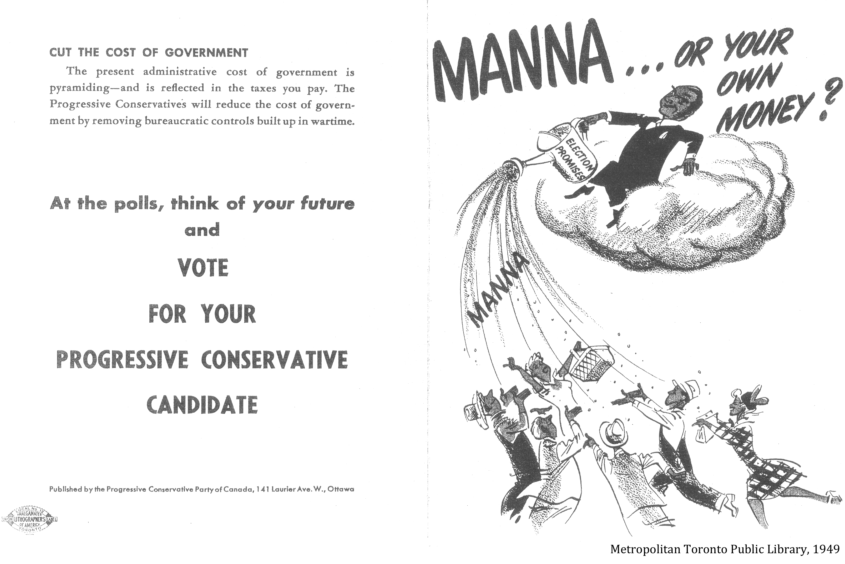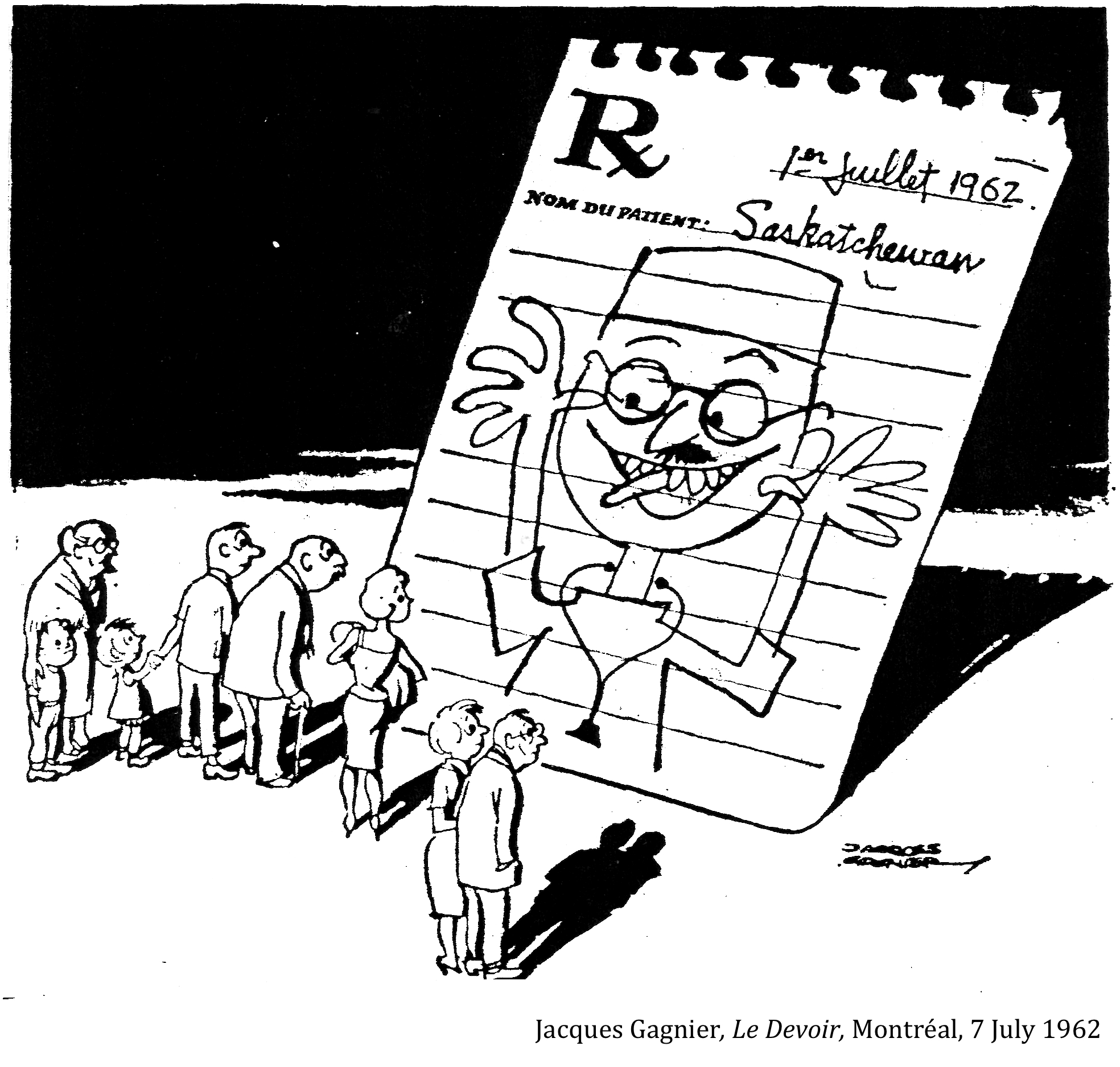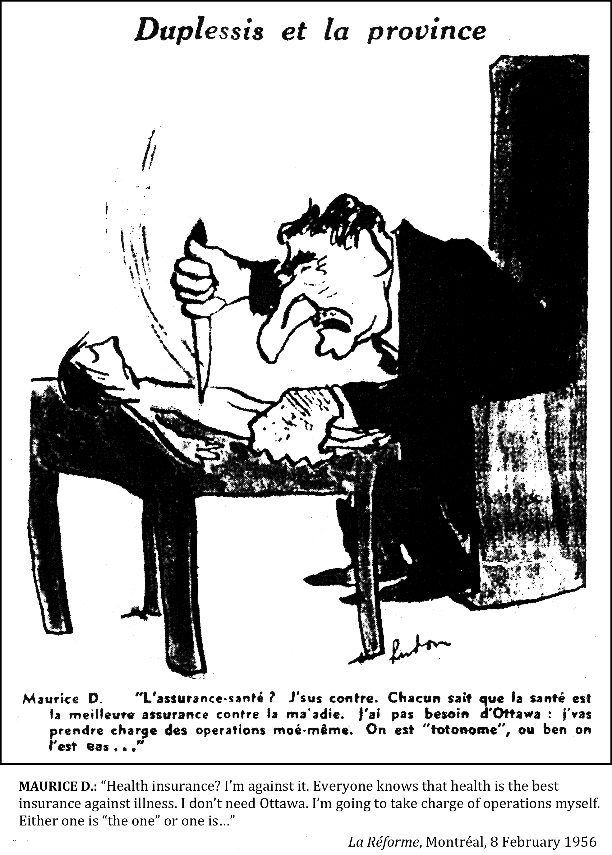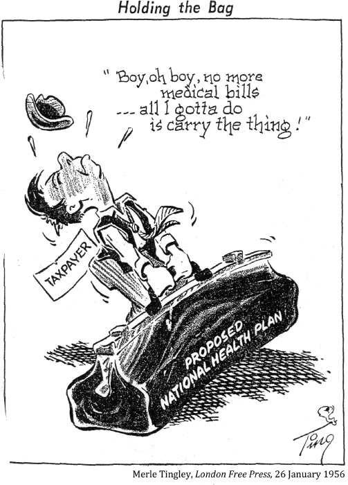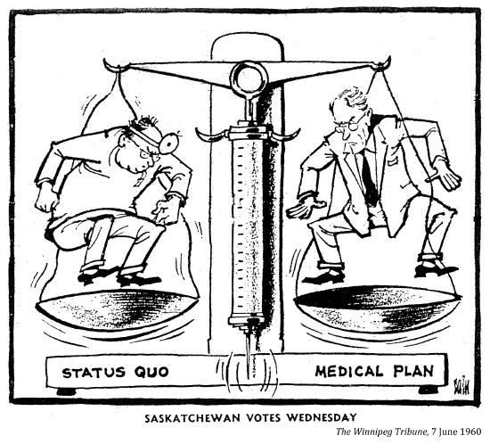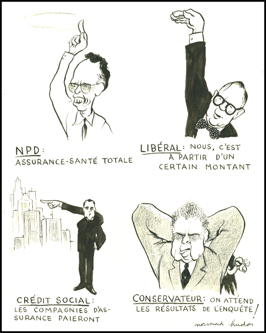 Normand Hudon, Health insurance, where the parties stand, McCord Museum, M997.63.257, 1962