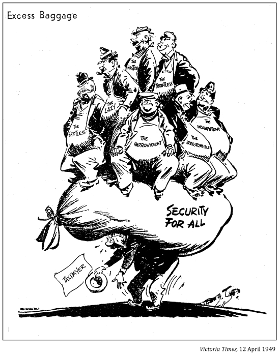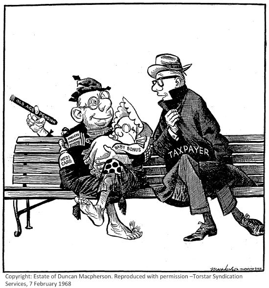 "At the time of Confederation . . . "social problems" were then viewed as the natural concern of the family, local community or church rather than the state. . . Frontier conditions placed a premium upon self-reliance, which was a tenable doctrine when a family or community produced and consumed most of the goods which it needed. . . .Those who for any reason were unable to make their own way were apt to be looked down upon as lazy or weaklings."