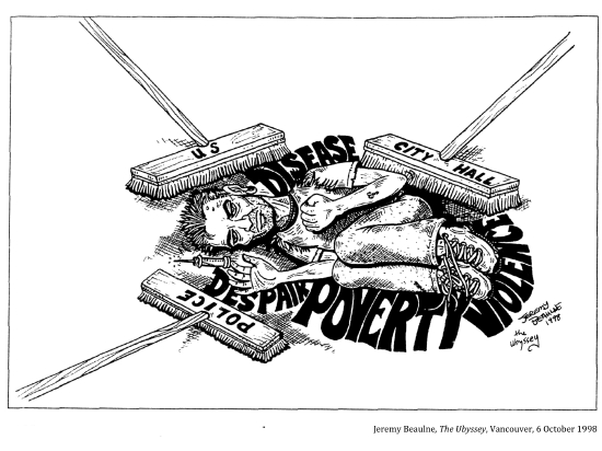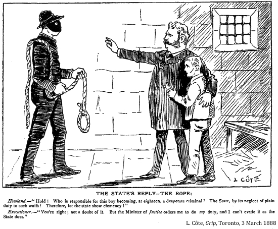 "Toronto's House of Industry . . . introduced, in the 1860s, a work test, implementing a woodcutting regime. 'By these means', the Board boasted, it was pleased to report, 'it has materially lessoned the number of applicants for relief made by the lazy and drunken . . . [In the 1880s some charities replaced the work test with the more onerous stone-breaking]."