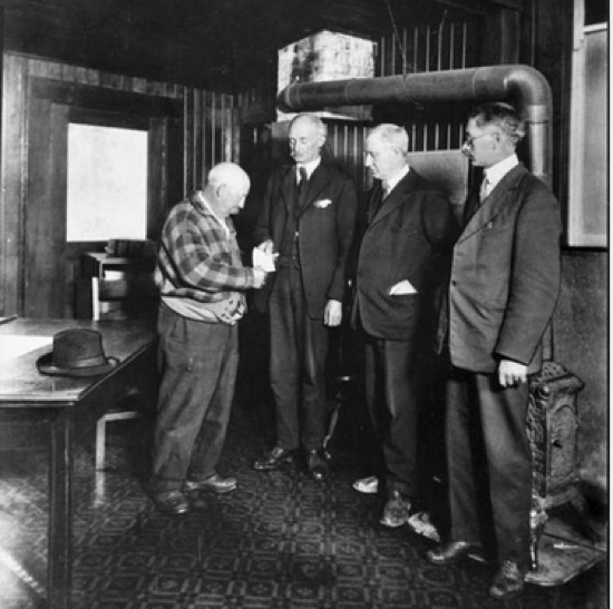 The first old-age pension cheque paid in the Dominion of Canada, Alberni, 23 September 1927, BC. BC Archives B-08022