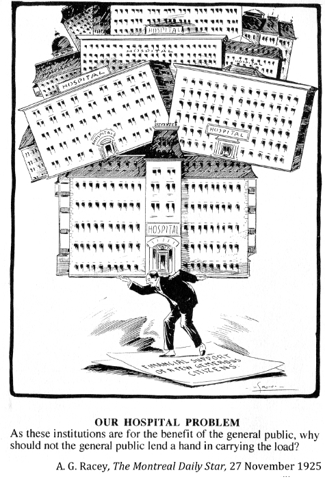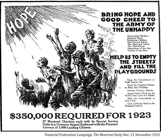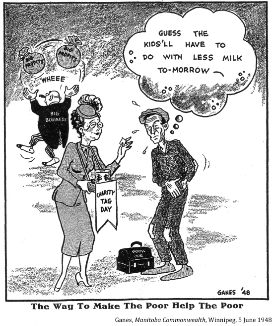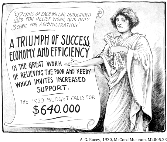 "[In 19th century Canada] charity was the responsibility of the churches, not the government. . . Non government enacted any social legislation in Ottawa until 1927. . . social programs were nobody's business except for the churches and individual do-gooders–– until the Great Depression."