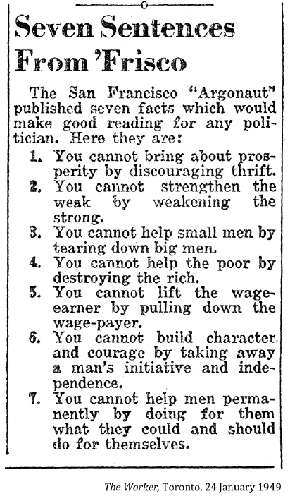 "The very worst thing a government could do would be to teach the unemployed to look to them for aid . . . The Government should be dependent on the people not the people on the government."